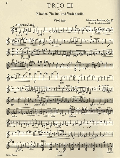 Brahms, J.: Trio in C, Op. 87 (violin, cello, piano) Barenreiter
