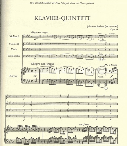 Brahms, Johannes: Quintet in F minor Op.34 (2 violins, viola, cello, piano)