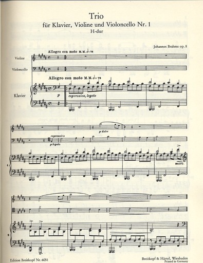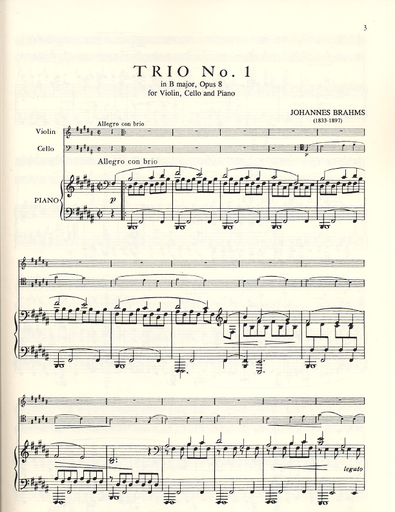 Brahms, Johannes: Trio No. 1 in B major, Op.8 (violin, Cello & piano)
