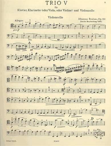 Brahms: Trio Op.114 in a minor (clarinet, cello, piano) or (viola, Cello, Piano)(violin, Cello, piano) IMC