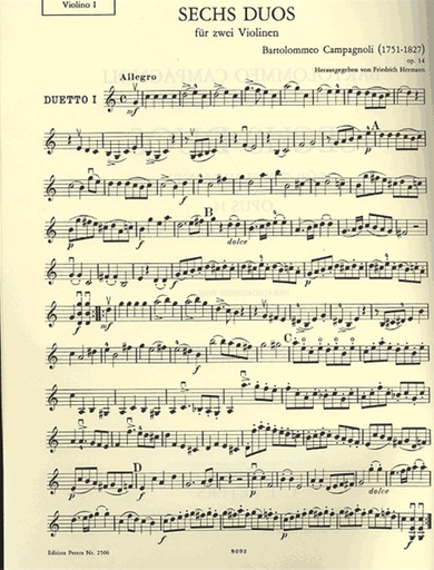 Campagnoli, B.: 6 Duos, Op.14 (two violins)