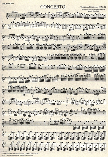 Albinoni, T.: Concerto Op10/6 in D (violin & piano)