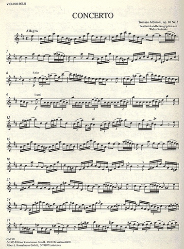Albinoni, T.: Concerto Op10/5 in A (violin & piano)