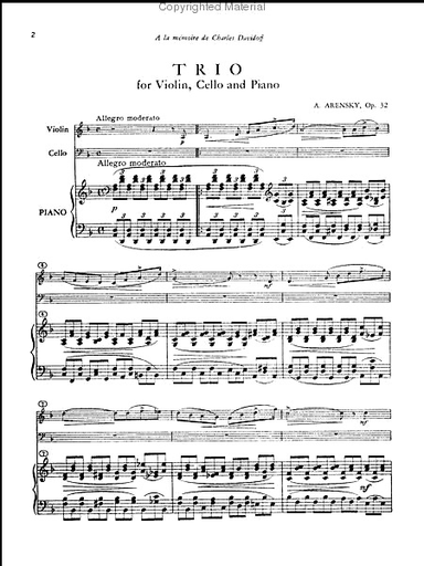 Arensky, Anton: Piano Trio in D minor Op.32 (violin, Cello & piano)