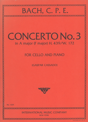 Bach, C.P.E. (Cassado): Concerto No.3 in A Major (F Major) (cello, and piano)