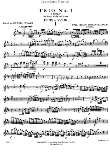 Bach, C.P.E.: Trio No. 1 (violin (flute), viola (clarinet), piano)