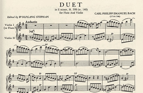 Bach, C.P.E.: Duet in E minor, H.598 (W. 140) (violin, and flute)(two violins)