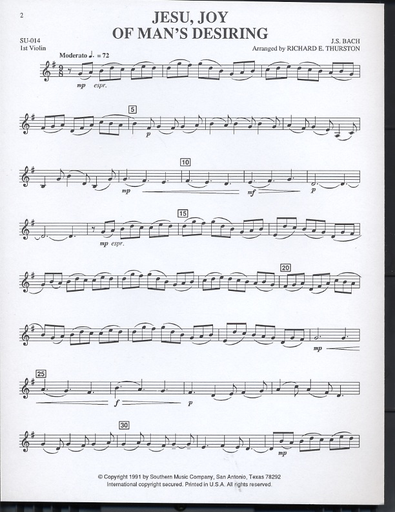 Bach, J.S. (Thurston): Jesu Joy of Man's Desiring (4 violins, score & parts)