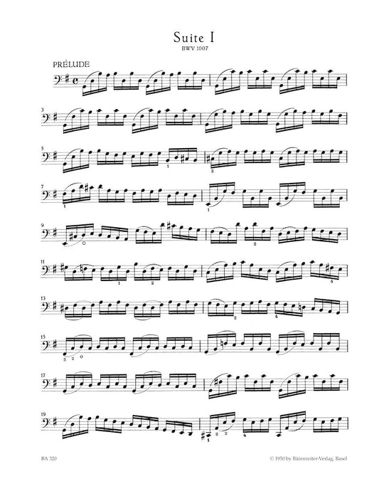 Bach, J.S. (Wenzinger): 6 Suites for Cello Solo, BWV1007-1012 - URTEXT (cello) Barenreiter