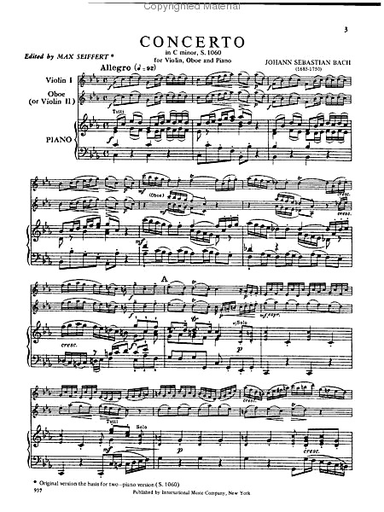 Bach, J.S.: Concerto in C minor (violin, Oboe & piano) (2 violins & piano) IMC