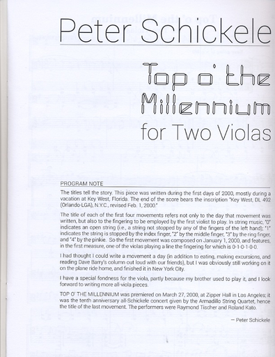 Schickele, Peter: Top o' the Millennium for Two Violas