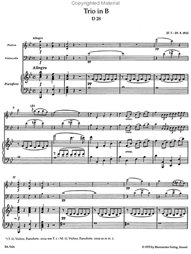 Schubert, F.: Piano Trios in B, D28 and Eb-D897 Op. post.148 (piano, violin, cello) Barenreiter