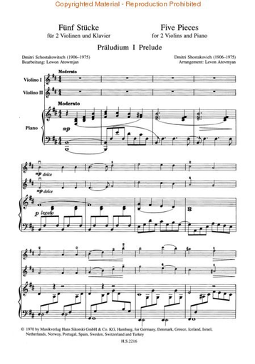 Shostakovich, Dmitri: Five Pieces for 2 violins and piano