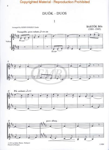 Bartok, B. (Szervanszky): Duos from Bartok's Choral Works (two violins)