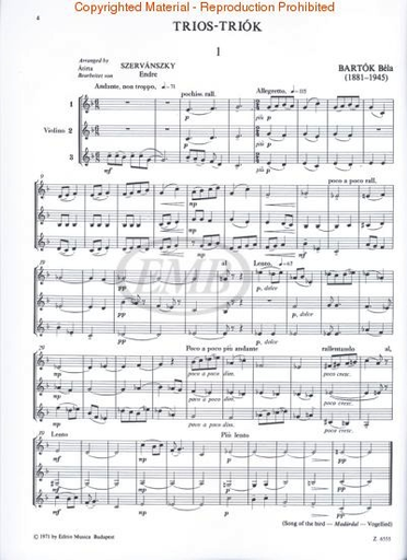 Bartok, B. (Szervanszky): Violin Trios from Choral Works (three violins)