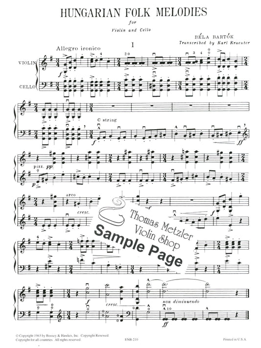 Bartok (Kraeuter): Hungarian Folk Melodies - TRANSCRIBED (violin & cello) Boosey & Hawkes