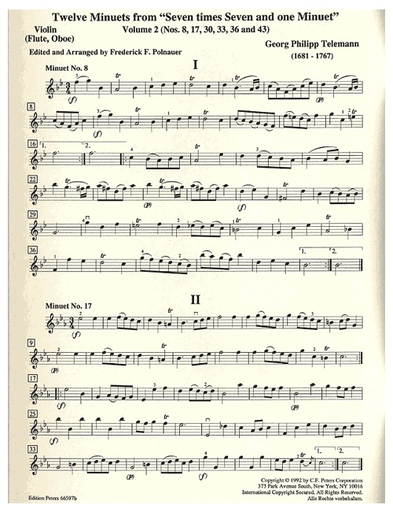 Telemann, G.P.: 12 Minuets from 7 x 7 and one Minuet Vol.2 (violin, viola, cello)