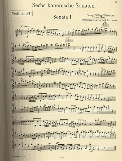 Telemann, G.P. (Hausswald): 6 Canonic Sonatas #1-3, Vol. 1, (2 Violins) Barenreiter