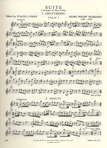 Telemann, G.P.: Suite in Bb Major (3 violins) IMC