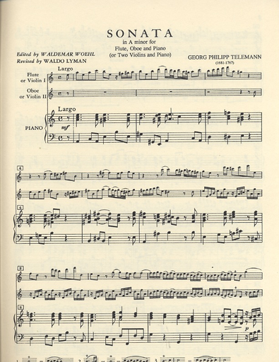 Telemann, G.P.: Sonata in a minor (2 violins & piano, Optional cello)