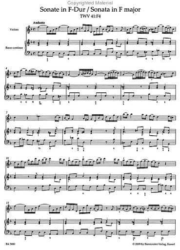 Telemann, G.P.: Two Sonatas for Violin & Basso Continuo (violin, piano, cello) Barenreiter