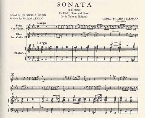 Telemann, G.P.: Sonata in c minor (2 violins & piano, Optional cello)