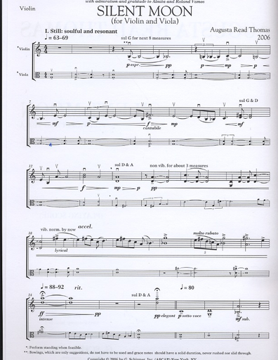 Thomas, Augusta Read: Silent Moon for Violin & Viola (score & parts)