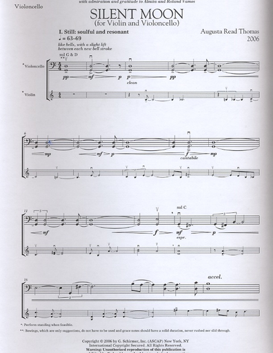Thomas, Augusta Read: Silent Moon for Violin & Cello (score & parts)