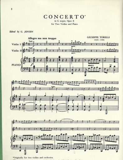Torelli, Giuseppe: Concerto Op.8 (2 violins & piano)
