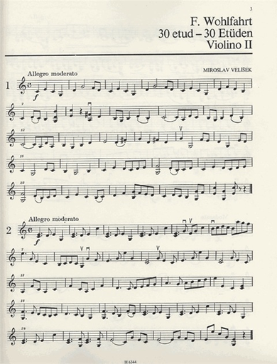 Velisek, Miroslav: Violin Accompaniments to 30 Studies by Wohlfahrt (violin) Editio Barenreiter Praha