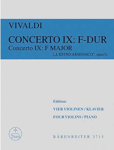 Vivaldi, A.: Concerto #9 in F - L'estro armonico (4 violins & piano) Barenreiter