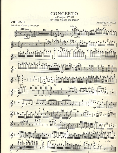 Vivaldi, A.: Concerto in F RV551 (3 Violins & Piano)