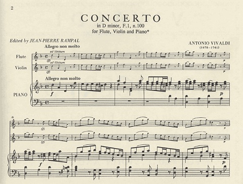Vivaldi, A.: Concerto in D minor, RV 514 (violin, flute, and piano)
