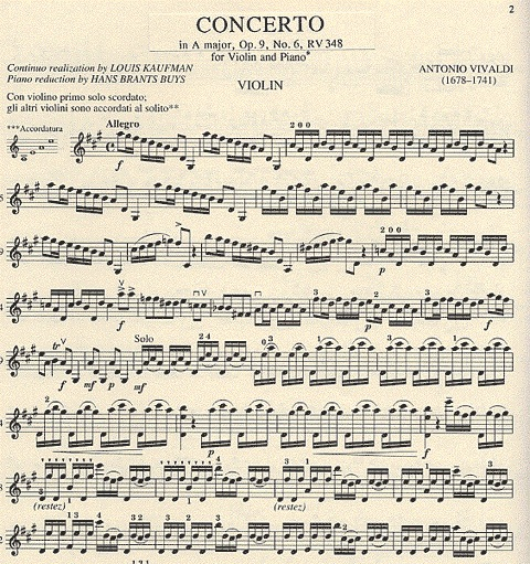 Vivaldi, A.: Concerto in A Op.9 No.6 (violin & piano)