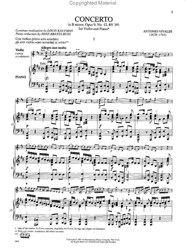 Vivaldi, A.: Concerto in B minor Op.9 #12 (violin & piano)