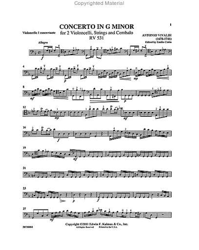 Vivaldi, Antonio (Colon): Concerto in G Minor RV531 (2 Cellos & Piano)