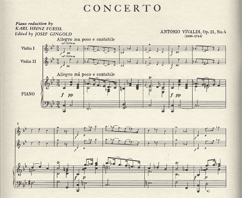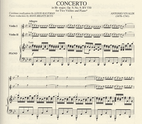 Vivaldi, Antonio: Concerto in Bb Op.9#9 La Cetra (2 violins & piano) IMC