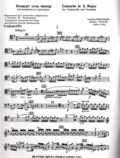 Vivaldi, Antonio (Rostropovich): Concerto in G, RV 413 (cello & piano)