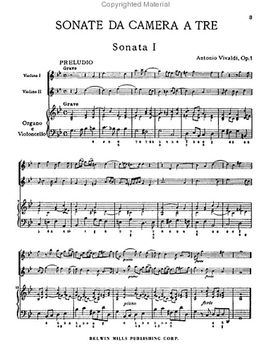 Vivaldi, Antonio: Sonatas da Camera a Tre, Op.1 Vol.1 (2 violins, cello, piano)