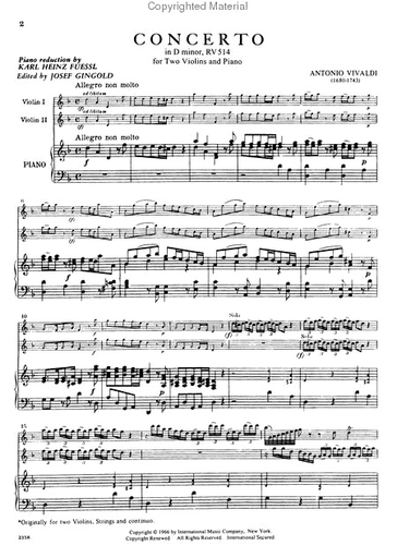 Vivaldi, Antonio: Concerto in D RV 513 (2 violins & piano)