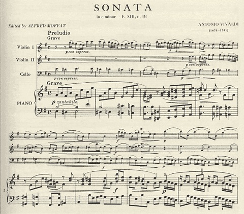 Vivaldi, Antonio: Sonata in F Op.13 #4 (2 violins & piano w/ cello ad libitum)