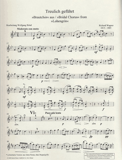 Wagner, Richard: Bridal Chorus from Lohengrin (violin, Viola, Cello) score & parts