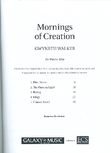 Walker, Gwyneth: Mornings of Creation (piano trio)