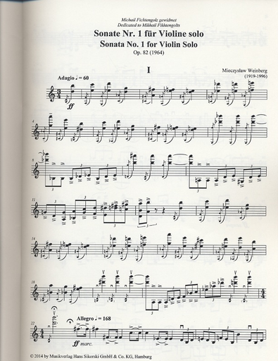 Weinberg, Mieczyslaw: Sonata No. 1 Op. 82 for Violin Solo