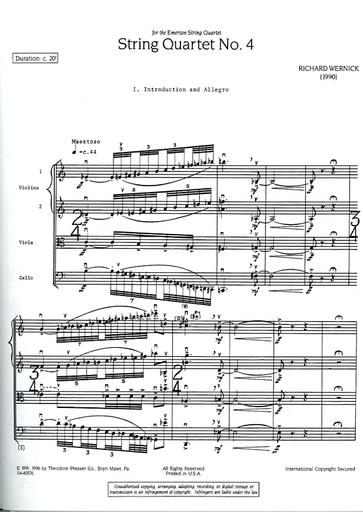 Wernick, Richard: String Quartet No. 4 (score and parts)