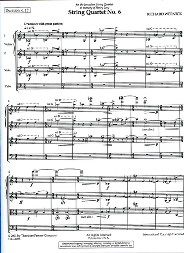 Wernick, Richard: String Quartet No. 6 (score and parts)