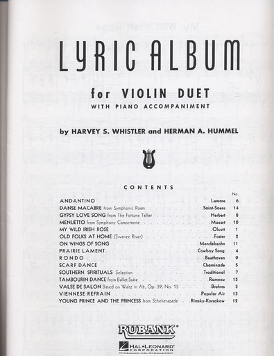 Whister, Harvey: Lyric Album (2 violins & piano)