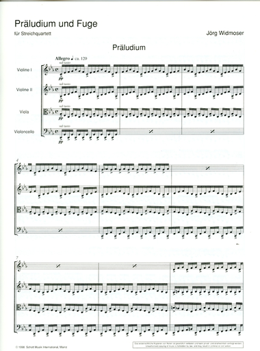 Widmoser, J.: Praeludium un Fugefor (2 violins, viola, and cello)