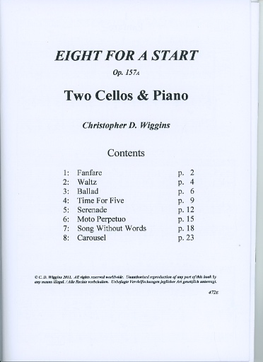 Wiggins, Christopher: Eight for a Start, Op.157A (2 cellos & piano)