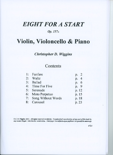 Wiggins, Christopher: Eight for a Start, Op.157A (violin, cello & piano)